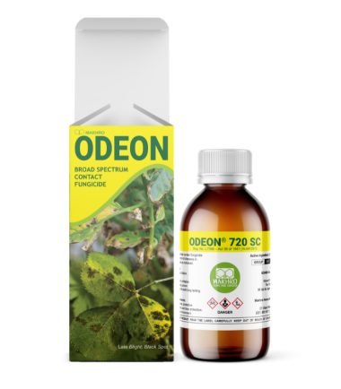 Odeon 720 SC is a powerful suspension concentrate contact fungicide designed for proactive disease management in crops and ornamental plants. Its effective contact protection helps prevent fungal infections before they spread, ensuring vigorous growth and high yields in agricultural crops while preserving the aesthetic appeal and vitality of ornamental plants.